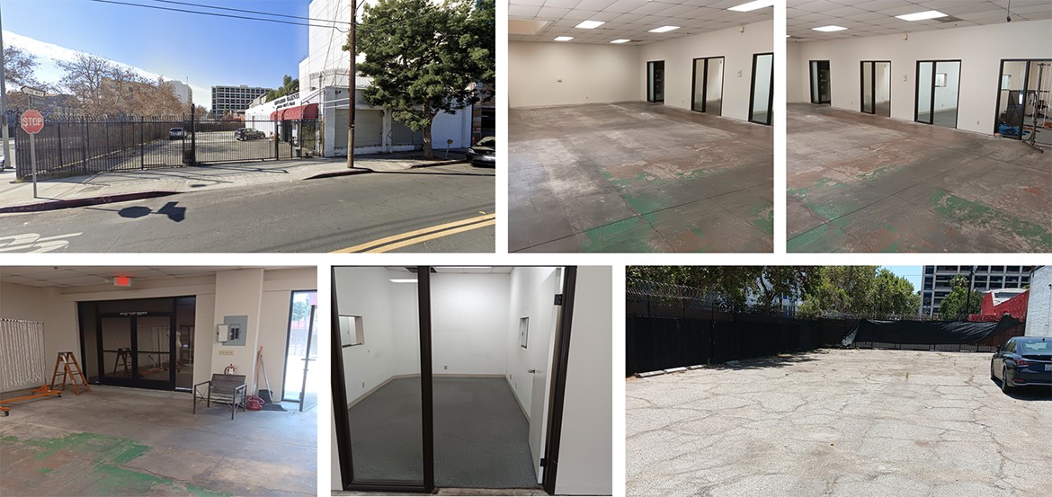 • Clean building with multi-use capability: Must see! • Ideal for creative or medical office, retail, restaurant, banquet hall, catering use, ghost kitchen, showroom, art or design studio, etc. • High ceiling clearance • 4 offices with HVAC, 2 restrooms, and break room • Secure gated parking lot • 4 blocks north of the Santa Monica (I-10) Freeway and 4 blocks east of the Los Angeles Convention Center • Lease rental: $12,000 per month NNN (NNN = ±$0.28 per sq.ft. per month) • Term: Submit