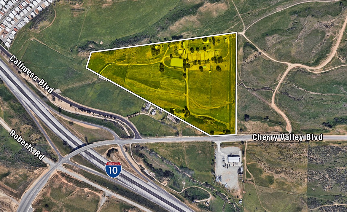 • Prime retail development site • 27.66 acres of raw land • Ideal for shopping center, big-box store, etc. • Calimesa Specific Plan Zone C-R (Regional Commercial); FAR 75:1 • Fantastic Cherry Valley location • At I-10 Freeway on/offramps • Adjacent to Yucaipa, Beaumont and Oak Glen • 10 miles to Redlands — 32 miles to Palm Springs • Close to Big Bear and Lake Arrowhead • Calimesa Planning Department has recently approved two retail developments of 75,000 SF and 575,000 SF • Seller shall retain the right to a leaseback for up to 6 months with a monthly rental of $1.00