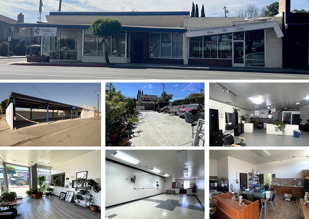 1032 E Compton Blvd: 2,237 sq.ft. building on 3,604 sq.ft. land • Interior/Layout: 3 office suites; 2 restrooms; additional storage space; existing HVAC infrastructure • Current Use/Income: configured as barbershop; current income: $800 per month • Highlights: functional retail storefront layout; ideal for owner-user or small business operator; can be delivered vacant